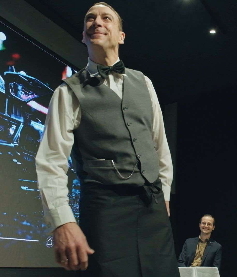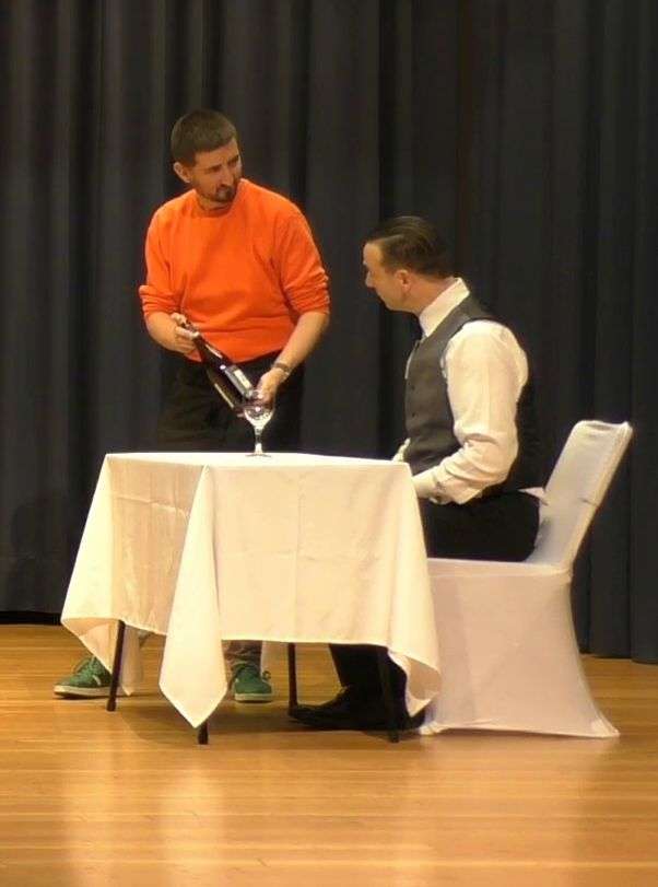 Natürlich bietet es sich an, mich vor dieser Bühnenshow als Comedykellner während des Essens zu buchen.